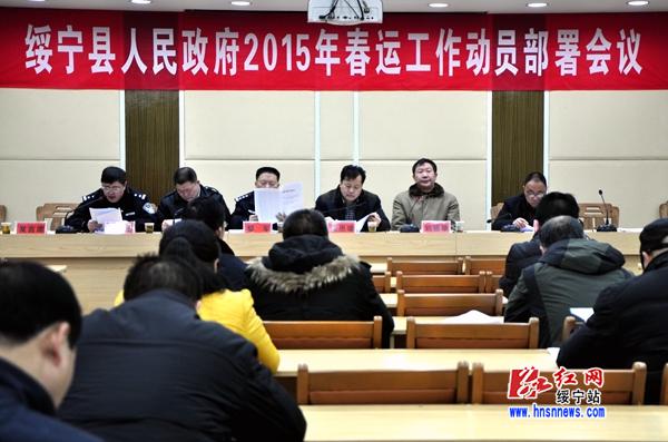 红网绥宁站2月4日讯(分站记者 王伟琪 通讯员 尹志恒)“为全力做好2015年春运工作,更好满足广大人民群众的出行需要,2月4日,绥宁县召开会议部署2015年全县春运工作。县领导梁恩雄、刘德雄出席会议。