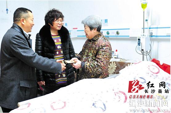长沙一汽慰问小组为80岁的退休职工黄桂英送上慰问金。企业供图