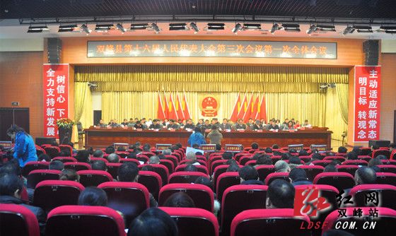 红网双峰2月5日讯(分站记者 贺永志 彭牡)2月4日上午8时30分,双峰县第十六届人民代表大会第三次会议在雄壮的国歌声中开幕。来自全县各条战线的人大代表将依法履行职责,为加速科学发展,建设幸福双峰建言献策。