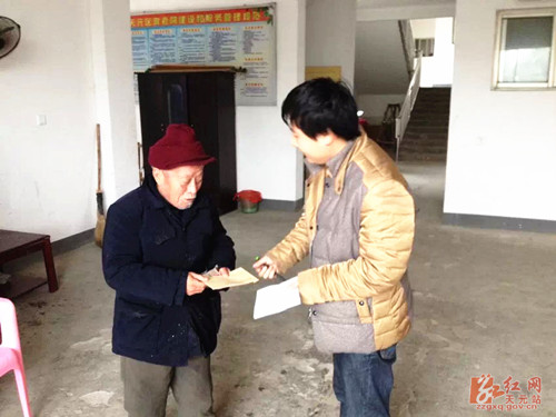 红网天元站2月10日讯(分站记者 殷杰 通讯员 陈亮)2015年春节将至,2月9日,株洲市天元区马家河镇计生协会来到太高社区敬老院、看望慰问了居住在这里的计生“特扶”家庭困难户王少球老人,并为他送去了慰问金与亲切的慰问,之后又来到浅塘社区的盛康托养中心,看望并慰问了罗秀英老人,也为她送去了慰问金,他们对此深表谢意。