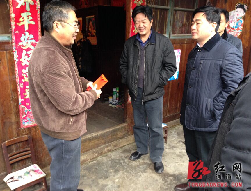 在杉木桥村蒋团二组,杨烨一行走访慰问了困难教师龙中岳家。龙老师因疾病花去了医药费几十万元,生活较为困难。烨县在与龙老师的交谈中,详细询问了解龙老师的工作、身体康复情况和家庭、生活状况。烨县对龙老师教书育人、安贫乐道、甘于奉献的崇高精神和优秀品格给予高度赞扬和充分肯定。他勉励龙老师,要乐观向上、克服困难、快乐生活,并预祝龙中岳一家新春快乐。