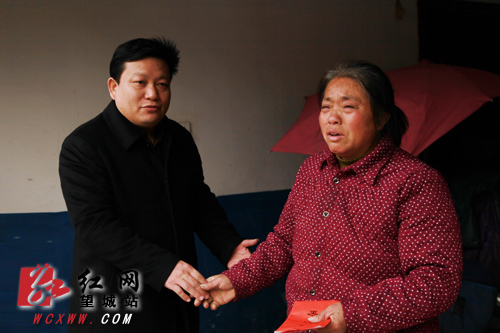 张权首先来到白沙洲街道腾飞村村民何正荣家,给他送去慰问金和棉被、大米等慰问物品。由于老伴身患残疾,女儿还在读书,何正荣一家生活十分贫困。令人高兴的是,去年政府帮助他家建好了安居房,女儿十分乖巧懂事,勤奋学习。张权叮嘱何正荣的女儿好好学习,将来用知识回馈家人和社会。