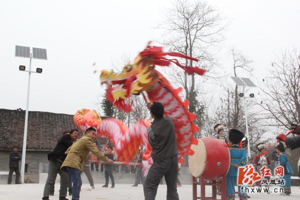 “听说村里有了大变化,在外打工的村民今年大部分都回来啦,大家'地梭地侃营臼轩'(苗语,意为欢欢喜喜迎新年)!”大婶边看表演边给记者当解说员,“这个球场以前一下雨就是个烂泥坑,现在都可以溜冰了”。正说着,“呦呵!”声响起,苗族小伙子们,举起龙灯舞了起来。大家的鼓声越是欢快,舞龙灯的队员们越是起劲。过来看热闹的乡亲们按捺不住激情,纷纷上阵参与到表演队伍中来。此时,欢呼声、掌声不绝于耳,球场上成了一片欢乐的海洋。