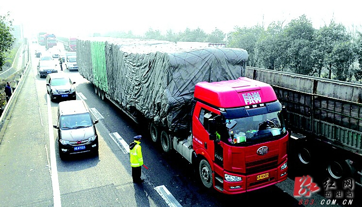 “京港澳高速岳阳段配套路网严重不足,前往随岳高速、岳常高速的车辆只能经岳阳收费站通行,使得岳阳收费站实际承担了高速公路主线站的职责。”省公安厅高速警察管理支队大荆中队民警龚伟表示,岳阳收费站出口仅8个收费通道,日均流量仅可容纳4000台次车辆,但现实情况却是:2月3日该出口经过车辆12048台次,2月4日达13419台次,大大超过设计流量。此外,岳阳互通出口匝道为单车道上坡加弯道,路况差、有效路幅窄。大货车爬坡耗时长,停车等候再启动拖延时间,极易造成车辆拥堵。种种原因叠加,岳阳收费站前这段高速公路成了“龟速公路”。