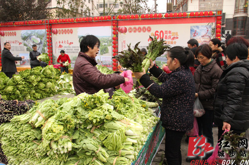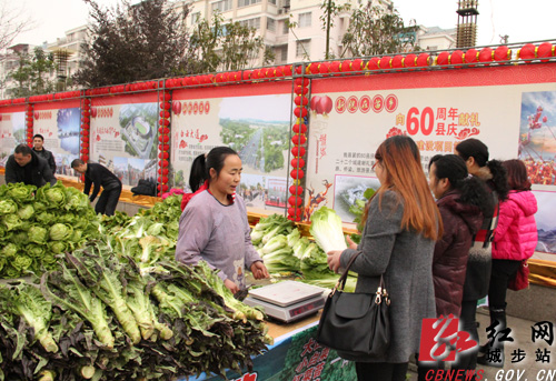 当天,城步苗族自治县“20万斤有机蔬菜惠市民”活动吸引了市民前来抢购。刚刚从该县甘溪有机蔬菜基地运到县城的有机蔬菜水灵灵的招人喜欢,大白菜、小白菜、红菜苔、白菜苔、莴笋杆全部按0.8元/斤进行销售。“这么好的蔬菜,市场上都是3、4块一斤,县春节前能买到这样的好蔬菜,真的有福气啊!”前来买菜的市民纷纷称赞。