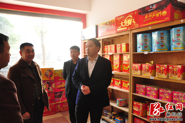 在麻阳城南一家烟花爆竹批发商家,李卫林现场查看了该经营户的安全经营情况,并对烟花爆竹从业人员安全培训持证上岗、经营场所消防设施配备、烟花爆竹产品安全质量以及烟花爆竹安全储存、运输等情况进行了检查。李卫林还十分关心商家节日期间烟花爆竹销售情况,他强调,安全就是效益,相关部门要加强烟花爆竹的运输和存储管理,要建立预警机制,对销售剩余的烟花爆竹要做好储存。同时,对全县烟花销售市场要进行严格检查,确保不出现假冒伪劣,非法违法的烟花爆竹产品。