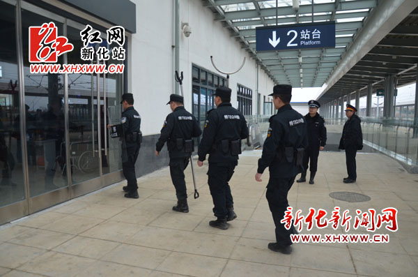 为保春运安全,按照上级部署把特勤全部防守在新化南站进站口第一线,并且增加武警兵护卫,形成反恐防暴震慑力度,为旅客出行保驾护航。