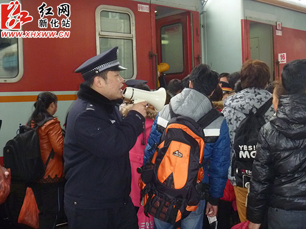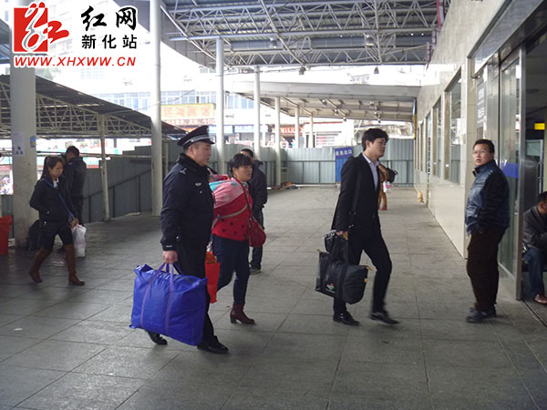 该所所长苏利中介绍,春节前夕,新化车站派出所就对节后新化车站的春运安全保卫工作做出了具体的部署,在确保管内治安秩序平稳的前提下,把警力集中在站前广场、候车室、站台等旅客聚集场所,让旅客随时看得见民警,把重点放在提高服务质量上,对有困难的旅客伸出援助之手,把新化车站春运工作打造成服务旅客的品牌,通过春运安全保卫工作,更加拉近与旅客的距离。