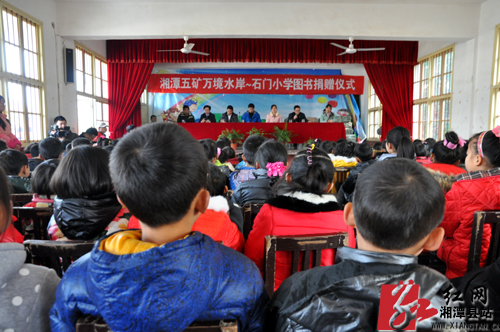红网湘潭县站3月4日讯(分站记者 杨建)一本书传递一份爱,一份爱成就一个梦想,一个梦想让无限希望起航。3月1日,经红网爱心家园湘潭站和九华经开区党委宣传部的牵线搭桥,湘潭爱心企业五矿万境水岸为我县青山桥镇石门小学捐赠2000册儿童课外读物。五矿万境水岸、市委党校、红网爱心家园湘潭站负责人,以及青山桥镇政府与中心校的工作人员参加图书捐赠仪式。据了解,青山桥镇石门小学地处青山桥镇与衡山县交界的偏远山区,该校现有小学一到六年级学生近300人,学生来自周边福门、天塘、桥头铺三个村,还有部分学生来自临近的衡山县。该校学生,80%以上为留守儿童。由于该校地处偏远,文化生活比较困乏,学校对图书的需求十分迫切。