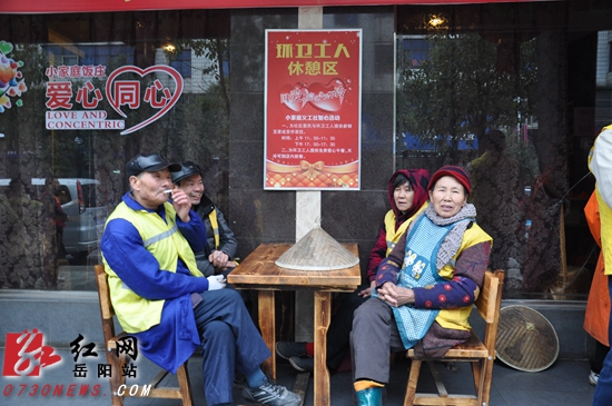 图为小家庭饭庄为环卫工人设立休息区。