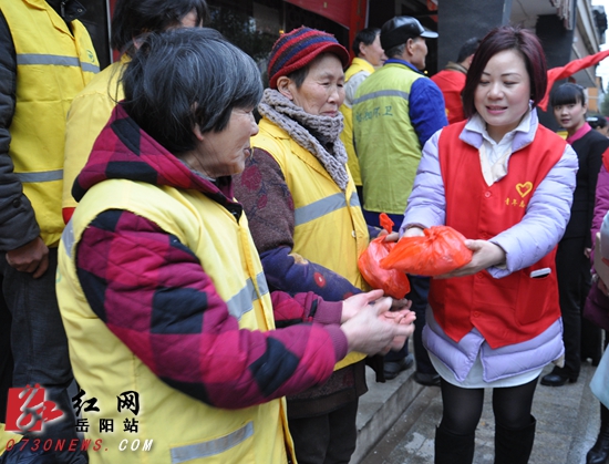 红网岳阳站3月6日讯(分站记者 宁平)3月5日,是元宵节,临湘团市委组织150名志愿者,在临湘市委常委、宣传部长李孟阳带领下,为工作一线的338名环卫工人送汤圆,以表达敬意和爱心。
