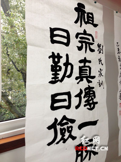 在座谈会现场,东湖街道的一些书法家挥毫泼墨,书写一幅幅立意新颖、寓意丰富的家训对联免费赠送给居民群众。现场拿到对联的张娭毑说,“我请徐老师帮我写了一副‘相知相爱相扶持知足常乐、重情重义重孝道感恩长存’,我要拿回去挂在我家客厅,让子女和孙子、孙女们都能谨记家训,谨记传统美德。”