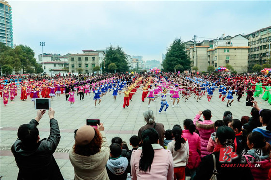 在各队进行精彩表演后,近千名队员共同为观众献上一支大型集体舞,她们和着和谐的旋律,舞出了辰溪女性健康向上、奋发图强的精神风貌。