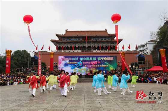 红网辰溪站3月9日讯(分站记者 张文竹 通讯员 邓璐)3月8日,辰溪县庆祝“三八”国际劳动妇女节暨“三区”文化工作者排舞展演活动在县刘晓公园举行。县妇联、文广新局、体育局、总工会、电视台等单位相关负责人,与现场万余名观众一同欣赏这场文艺盛会,共同庆祝第105个“三八”国际劳动妇女节。本次展演活动由县委、县政府主办,县妇联、文广新局、体育局承办,县总工会、电视台、排舞协会协办。来自各乡镇、村(社区)的28支代表队,近1000名妇女同胞参加演出。开幕式上,28支展演队依次入场,县妇联党组书记、主席张碧波,县文广新局局长周丹为广大妇女同胞致辞祝贺,县体育局局长杨文军宣布排舞展演开始。
