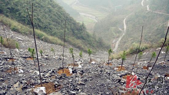 红网吉首站3月10日讯(通讯员 彭颖) 3月9日,笔者跟随吉首市林业部门工作人员来到矮寨社区那科求造林地段看到,该市去年12月开工的矮寨景区“裸露山体”造林绿化工程如今已全面完工,这段悬崖边上的“生态伤疤” 将逐步得到修复。