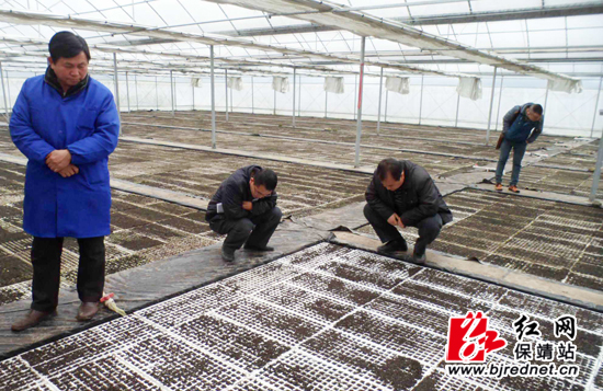技术员查看烟苗生长情况
