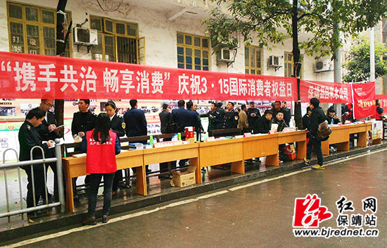 红网保靖站3月16日讯(通讯员 王俊芝)为纪念“3·15”国际消费者权益日及新《消法》实施一周年,3月15日,保靖县工商局、消费者委员会联合县质监局、食品药品监督管理局、农业局、烟草专卖局、畜牧局、电力公司及中国人民银行保靖支行、自来水公司等单位举办了“3·15”消费者权益日宣传服务活动。各职能部门利用宣传展版,集中展示了打假维权成果,有力传递了消费维权的正能量。当天,围绕“携手共治畅享消费”这一消费维权年主题,各职能部门在现场设立了政策法规宣传台、咨询投诉举报台、真假商品识别台。县工商、烟草、质监、药监等单位围绕消费热点,分别提供了真假香烟、真假日化用品、真假药品等实物,帮助群众识别真假商品并现场受理投诉举报;县农业局工作人员为消费者讲解了购买农资时需注意的事项,县畜牧局工作人员发放了保障畜禽水产品质量安全有关资料,县电力局工作人员耐心宣传了用电故障维修指南,银行方面工作人员现场传授了假币识别的方法,吸引了大批群众参与。