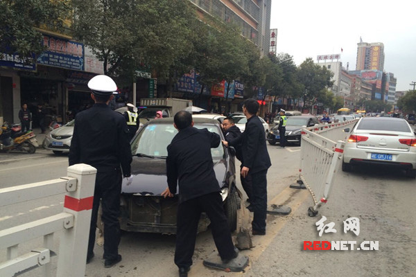 红网隆回3月20日讯(通讯员 罗敏)3月20日上午7时40分,在隆回桃洪西路农贸市场路段发生一起交通事故。一辆正常行驶的小车在行经这里时,因司机低头调整安全带导致车子偏离了车道,失控撞向路中护栏,万幸的是事故没有造成人员伤亡和殃及过往车辆安全。当日7时40分,桃花坪中队民警驾车在辖区道路巡逻,当行经桃洪西路农贸市场路段时,突然传来“嘭”一下响声。只见前方一辆牌照为湘N019XX的黑色海马小车失控撞向道路中间护拦后停在了道路中央,路面5节交通护栏也被撞开数米远,横跨在路面。此时正值上班高峰期,过往行人车辆较多,道路非常拥挤。农贸市场路段又是县城区重要交通要塞,疏导稍为迟缓,将造成该路段严重的堵塞。为确保道路交通畅通,巡逻民警马上启动交通工作应急预案,一边安排执勤人员指挥疏导交通,全力保障道路畅通、有序;一边援助车上乘客,确保乘客安全。在确保车上乘客并无大碍后,民警在过往市民的帮助下将事故车辆移到一边,恢复了事故现场路段的交通畅通。