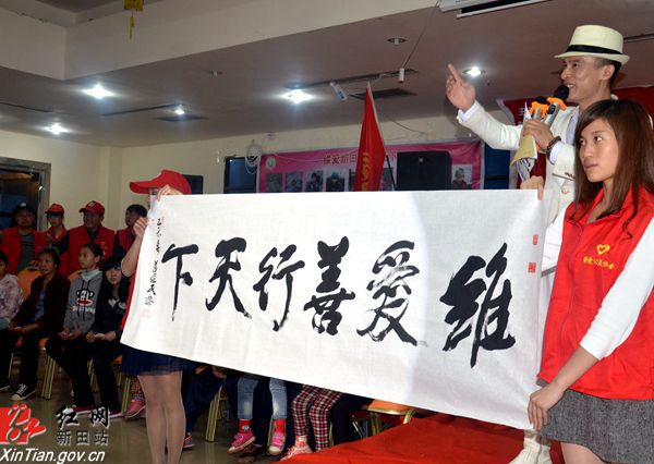 新田维爱协会会长吉华灯介绍该协会成立一年来所开展的公益活动。与会人员还观看了维爱协会所开展的慈善活动相关视频,并表彰了维爱协会优秀公益志愿者。活动现场,开展了现场捐赠和慈善义卖,募集善款30余万元,其中个人捐款28余元,单笔个人爱心款达6万余元,字画拍卖近2万元,同时爱心人士还与特困家庭进行结对帮扶,把慈善捐助活动推向高潮。
