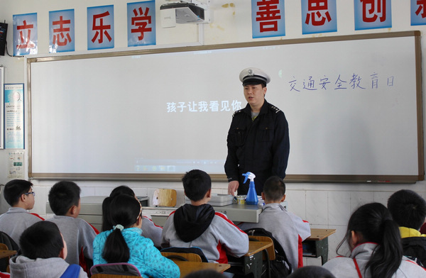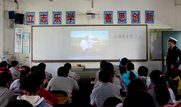 3月30日当天,大队民警深入中小学校开展广泛的交通安全宣传活动。在卫门口小学、滨湖路,民警走进课堂,给孩子们播放《农村儿童安全》和《孩子让我看见你》两个文明交通动漫宣传片。民警还以本地中小学生交通案例为着手点,结合这个学校周边交通环境特点,向学生们讲解了应该如何安全行路、乘车、骑车,怎样过马路等基本交通安全常识。