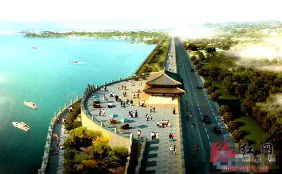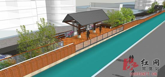 “禁修轩主”告诉记者,他是从去年下半年开始对沅安路堤坡景观改造有了自己的想法,后来找到朋友帮忙设计了第一稿,“当时对设计样稿不是特别满意,加上诗墙改造工程已经动工,所以没有出稿,春节过后,改造突然停工了,我这才继续完善设计效果图,3月30日出稿”。他说,改造诗墙内侧绿化景观,首先应该大幅度拓宽堤顶步道,敞开堤上现有建筑首层,令畅行无阻,然后在堤上开行电动汽车,让人们可以去东西两端更远地方观水纳凉;并在堤上适当位置设置休憩座椅、遮阳伞、茶座、咖啡吧等休闲设施,供人们消遣消暑,放松心情。“禁修轩主”建议,可以尝试在堤顶适当位置适度仿建原杨泗庙、文庙、水星楼、水府庙、皇经阁等旧迹并镌刻来龙去脉于其上,方便人们随时顶礼膜拜和了解常德历史;再辅之以一些休憩驿站、观景平台、文化雕塑、花草树木等。 如此,沅水北岸沅安路、仿古城墙、堤顶步道、诗墙外滩、沅水风光等融为一体,将形成一个规模宏大、内涵丰富、业态聚集、人丁兴旺的旅游景观。