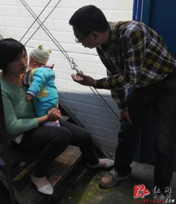 红网天心站4月1日讯(通讯员 曾灿波)3月31日上午,沙河社区劳动广场德胜工地7楼,一女子欲跳楼轻生。街道、社区、民警、消防赶到现场,经过4小时劝说,轻生女子被成功劝下。3月31日上午8点多,沙河社区曾主任接到市民电话,迅速赶到现场,看到工地未竣工的楼盘7楼的外墙边坐着一个怀抱6个月的婴儿的女人,嚎啕大哭,情绪激动,扬言见不到当事人就跳楼,楼下有大量市民围观。社区立即拨打了“110”,并上报上级部门,10分钟内街道综治办李畅主任、书院路派出所民警、区消防大队赶到现场参与救援。