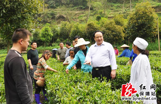 红网保靖站4月3日讯(通讯员 陈祖林)4月1日,保靖县政协主席梁远新带领县政协经科委、县茶叶办等相关部门负责人深入水田河镇调研黄金茶生产情况。