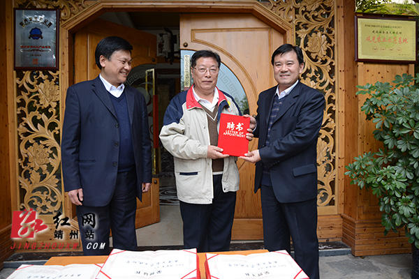 全国人大代表、深圳华昱集团总裁麦庆泉从靖州县委书记钦代寿手中接过聘书 陈时贵 摄
