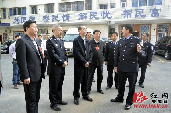红网零陵站4月15日讯(通讯员 秦文杰)4月14日下午,省公安厅党委委员、副厅长李介德,省公安厅刑侦总队总队长赵剑,省公安厅禁毒总队总队长董瑛一行在市政府副市长、市公安局局长刘新良等领导的陪同下,来零陵公安分局徐家井派出所调研指导公安工作。零陵区委书记严兴德,副书记、区长唐烨,副区长、公安分局局长王小会等陪同。