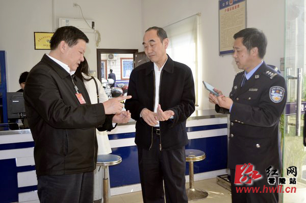 李介德一行先后走进徐家井派出所户籍室、值班备勤室、接处警处、社区警务室和荣誉室等地进行察看,并与社区民警亲切交流,详细了解该所的人员配备、硬件配备和软件建设情况。