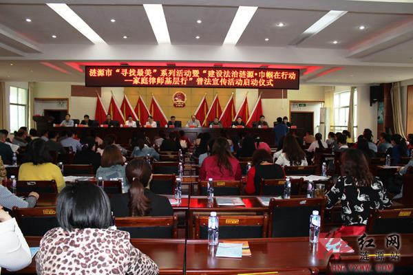 红网涟源站4月28日讯 (分站记者 刘小芳 通讯员 严望舒) 4月27日,涟源市“寻找最美”系列活动暨“建设法治涟源·巾帼在行动——家庭律师基层行”普法宣传活动启动仪式在蓝田街道办事处六楼会议室举行,涟源市委副书记宋建明作重要讲话并宣布活动启动,涟源市委常委、组织部长、统战部长朱桂良主持仪式,涟源市副市长、市妇儿工委主任梁育清等出席启动仪式。