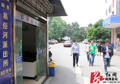 来自市、县的“网络大咖”们实地查看易俗河派出所值班接待室。