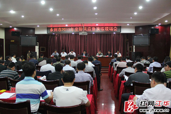 4月28日,永州市在江华瑶族自治县召开2015年度防汛应急演练现场会,市委常委、副市长蒋善生在会上要求,要紧绷防灾抗灾思想弦,加强防汛应急演练,全力确保涔天河水库及永州市安全度汛,确保人民生命财产安全。永州市各级各部门和市县防汛指挥部成员单位参加了会议。