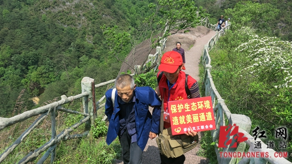 红网通道站5月4日讯(分站记者 左茜 通讯员 吴建东)5月3日,通道义工联合会和靖州志愿者协会的30余名志愿者来到国家4A级景区万佛山,开展文明旅游绿色出行”环保志愿活动。在各个景点,志愿者们有的高举“保护生态环境、造就秀美通道”、“人人举手之劳,处处可见美丽”、“文明出行,绿色旅游”等宣传告示牌;有的拿着扫把在清扫道路;有的用夹子拾起地上和水沟的废弃物品;有的向游客提供旅游咨询等,倡导广大市民自觉养成良好的环境保护习惯,呼吁人们增强环保意识,提升环保理念,为实现天蓝、地绿、水净的美好家园作出贡献。