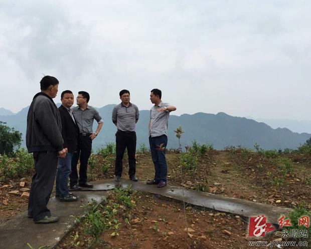 图为永顺县委副书记、县长陈海波(右二)一行在砂坝镇高楼村茶叶产业基地察看茶叶产业的种植规模、基础设施建设等工作情况。