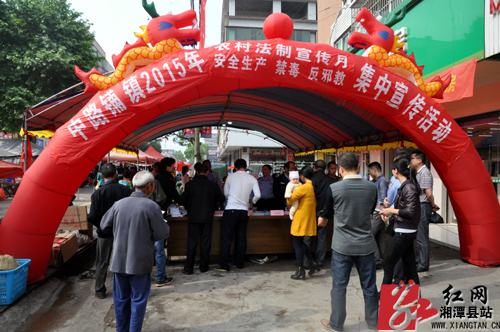 红网湘潭县站5月7日讯(分站记者 杨建)5月6日,湘潭县中路铺镇22个镇属、驻镇站办所联合县司法局、人民法院、人民检察院、县610办等单位在镇上老街集市,开展以“法治进乡村,培育新农民”为主题的“农村法制宣传月”集中宣传活动,向人民群众宣传法律知识。活动现场,工作人员设立了宣传彩虹门、法律咨询台,并通过播放法制宣传音频、拉横幅、发资料、现场咨询等方式,进一步增强普法宣传效果。活动中,不时有群众前来咨询,工作人员都一一进行耐心解答,整个宣传活动进展有序,激发了群众学法、用法的热情。