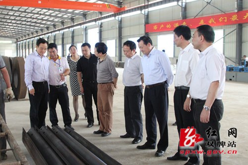 永州市委副书记、市长向曙光(左一)一行了解波形护栏生产情况