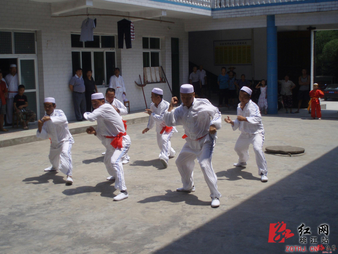 桃花江回族武术流传于鲊埠回族乡一带,属阿里清真派,融阿里、少林、武当三大门精华于一炉,动作简捷,古朴纯真,内外兼修,刚柔相济,能快能慢,善顾善打,博杂精深,古朴无华,具有鲜明的民族特色,是中华武术不可多得的珍宝。目前,全省各地回族中尚无与桃花江回族武术同类的体育活动。