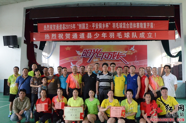 “创国卫·平安侗乡杯”羽毛球比赛圆满结束,获奖团队上台领奖