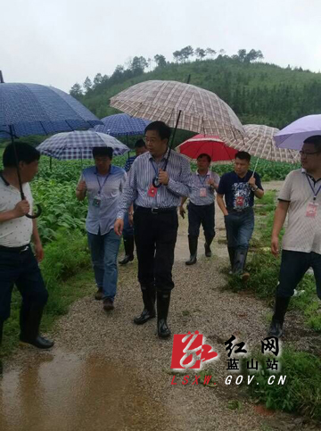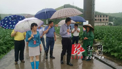 红网蓝山站5月21日讯(通讯员 赵彬) 5月20日,蓝山县委书记何冲龙率烤烟办、烟草公司等单位有关负责人深入蓝屏、祠堂圩、洪观等受灾乡镇,检查指导烤烟救灾补损工作。县委常委、宣传部长刘素萍陪同前往。