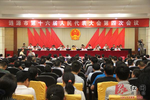涟源市十六届人大四次会议第一次全体会议在涟源宾馆小礼堂召开