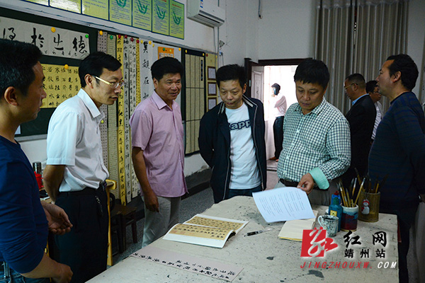 王震球一行在靖州县鹤山小学对接书法讲座工作 陈时贵 摄