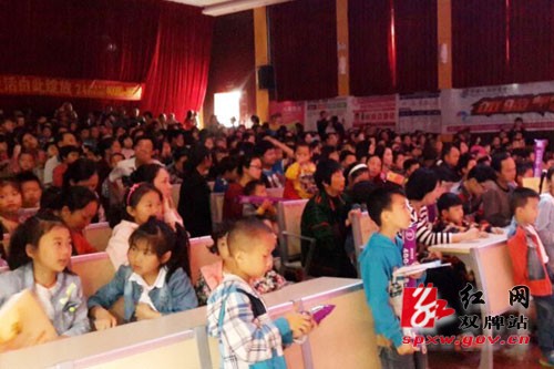 红网双牌站5月27日讯(通讯员 唐娟)“在山的那边海的那边有一群蓝精灵,他们活泼又聪明,他们调皮又灵敏……”5月25日,伴随着经典儿歌《蓝精灵》在双牌县花鼓剧院激情唱响,由湖南省邮政推出的大型益智魔幻儿童剧《蓝精灵》双牌站巡演活动拉开序幕。“听说《蓝精灵》在其他地方巡演的效果很不错,所以带孩子来看看。幸亏提前买了票,要不这么多人真怕抢不到座位。”正等候检票的吴女士表示。