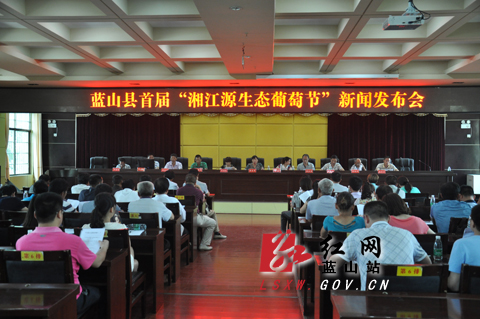 红网蓝山站5月28日讯(分站记者 李宗凯 梁利 通讯员 廖文娟)5月27日下午,2015年湖南蓝山首届“湘江源生态葡萄节”新闻发布会在县委党校会议室举行。县委常委、宣传部长刘素萍主持发布会。