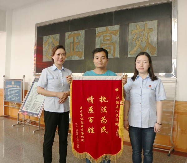 红网沅陵站5月28日讯(分站记者 陆丹 通讯员 邓晗 吴艳 单鹏) 5月27日下午,沅陵县人民法院立案大厅迎来了一位特殊的客人,当事人蔡传凤拿着一面绣“执法为民,情系百姓”的锦旗,送到主审女法官吴艳手中,感谢法官主持公道。
