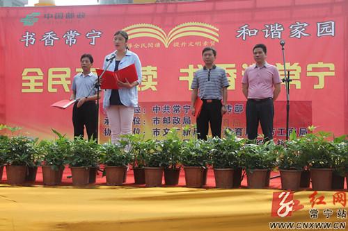 红网常宁站5月29日讯(分站记者 文齐帮)五月常宁,书香萦怀。5月28日上午,由常宁市委宣传部主办的“全民享阅读·书香满常宁”全民读书公益活动在东风广场拉开帷幕,本次活动持续3天。9时,全民读书公益活动仪式正式启动。常宁市委常委、宣传部长谌惠渝,衡阳市邮政局副局长谭远出席活动,正县级干部刘德华主持活动启动仪式。