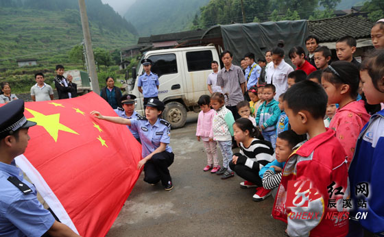 红网辰溪站5月29日讯(通讯员 孙海波)“六一”国际儿童节即将来临,5月27日,辰溪县公安局组织青年民警,带着文具、书包、水果等礼物,来到辰溪县十分偏僻的田湾镇选场村,和村里的留守儿童们提前过“六一”节,让留守儿童们感受到了节日的氛围和社会大家庭的温暖。在学校操场,青年民警们与学校的留守儿童愉快的交流,认真了解了他们的生活、学习情况和遇到的困难,鼓励他们要好好学习、天天向上。