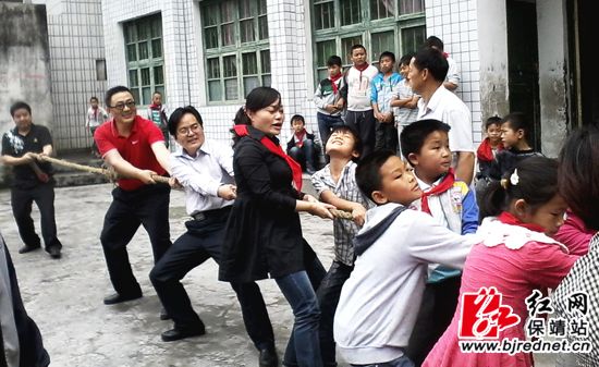 之后,各位领导、嘉宾们还与孩子们一起参加了拔河活动,现场气氛激烈异常,掌声、呼声、欢笑声此起彼伏。