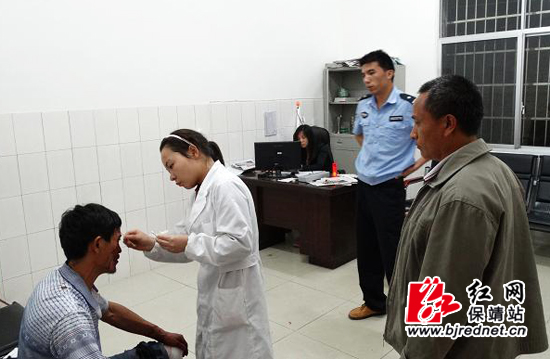 红网保靖站5月30日讯(通讯员 龙敏)“有困难,找警察!”简简单单几个字,是人民警察对社会的一种责任、对人民的一份承诺,更成了老百姓心中一种希望、一种实实在在的依靠。5月28日中午,保靖县大妥乡马洛村的王顺华特意来到县公安局复兴派出所,向救助他的民警们表示谢意。5月25日晚,夜黑人静。正在所里值班的复兴派出所民警胡胜、贾圣宇,突然听见门外有响动,两人立即冲出去,只见坪场中央一团黑影,发出微弱的呼救声:“救救我,救救我。”忙近前仔细察看,是一名50来岁的男子,眉心处有伤口,满脸是血,裤子也被鲜血染红大片,浑身还散发出刺鼻的酒味。