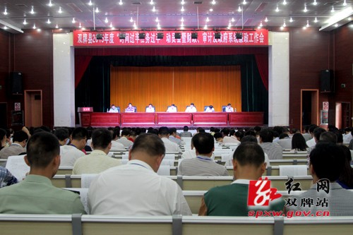 红网双牌站5月30日讯(通讯员 何恒)5月29日,双牌县2015年度“时间过半任务过半”动员会暨财政、审计及政府系统廉政工作会议在县礼堂召开。县委书记苏小康,县委副书记、县长魏和胜,县领导唐冬华、唐彦、刘红安、张少宣、周华出席会议并在主席台就座。县委副书记、县长魏和胜主持会议。会上,县委常委、县委办主任、宣传部长张少宣宣读了关于2014年度全县协税护税、非税收入目标管理考核兑现情况的通报;茶林镇、县人社局、县法院、泷泊镇分别作了典型发言;县财政局、审计局、监察局、国税局、地税局等部门作了表态发言;各乡镇场、县直部门向大会递交了财税工作目标管理责任状。